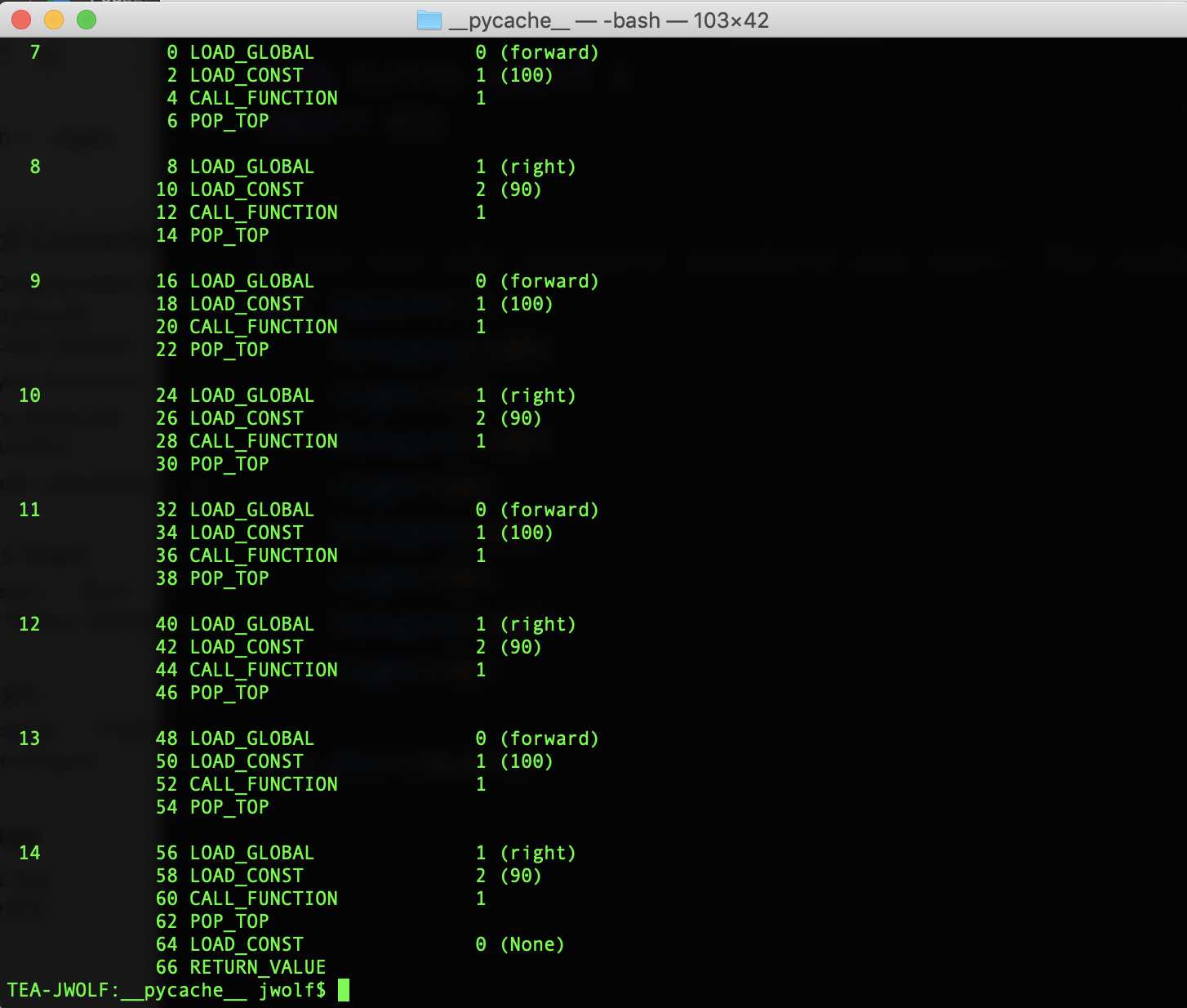 Once your code is in machine language, your computer takes over to carry out the instructions you give it. In the case of the drawing assignment, this meant showing a moving turtle drawing lines on your screen.