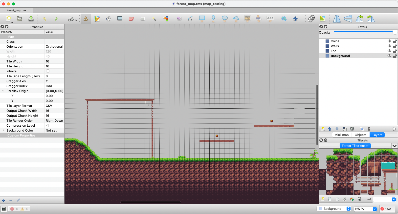 ๐พ Play the game and test your changes: python game_platformer.py. You should see the coins you added! If they do not disapear when your player collides with them, you most likely edited the incorrect map layer.