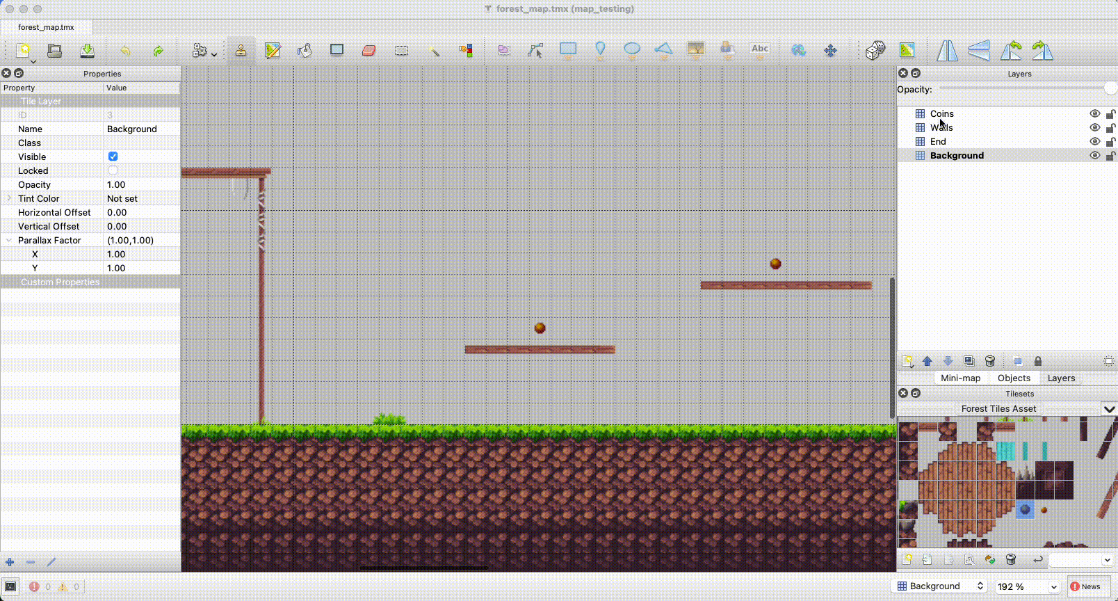 Double click the forest_map.tmx file to open the map in Tiled